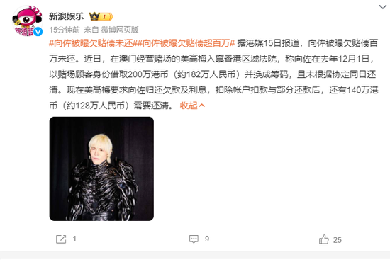 新浪娱乐提到,据港媒报导,法院文件中揭露美高梅中国控股有限公司(2282)指出,向佐于2024年12月1日,在其澳门旗下赌场借取200万港元并换成筹码,约定当日归还。但扣除帐户扣款与部分还款后,尚有140万港币未清偿。根据借贷协议,债权人可收取18%年利率,并自借款日起计算至偿还为止。